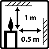 Houd een afstand 0,5m aan de zijkant en 1m aan de bovenkant van zaken die vlam kunnen vatten